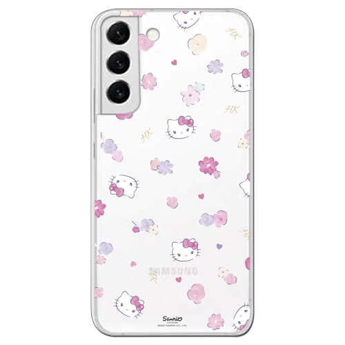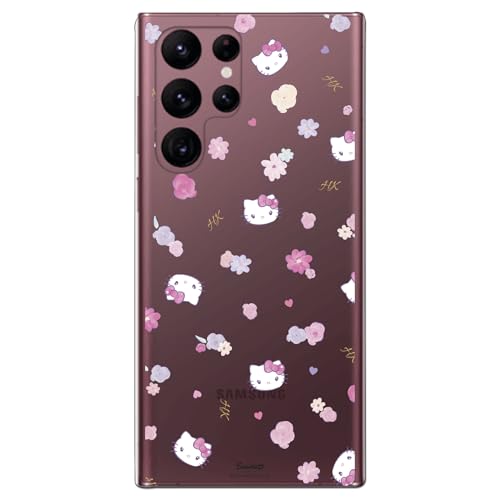 Personalaizer Samsung Galaxy S22 Ultra-fodral med Hello Kitty-mönster och blommönster - Kawaii stil - transparent flexibelt TPU-silikonfodral