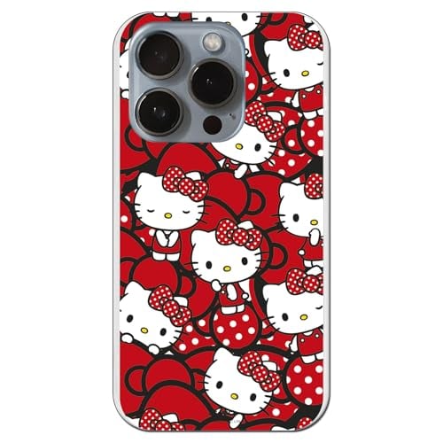 Personalaizer Mjukt transparent silikonfodral för iPhone 15 Pro med Hello Kitty mönster på rosa mönster - TPU-fodral kompatibelt med iPhone 15 Pro
