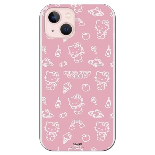Personalaizer Officiellt Hello Kitty-fodral kompatibelt med iPhone 13 Mini - transparent flexibel TPU silikon med mönster på rosa design