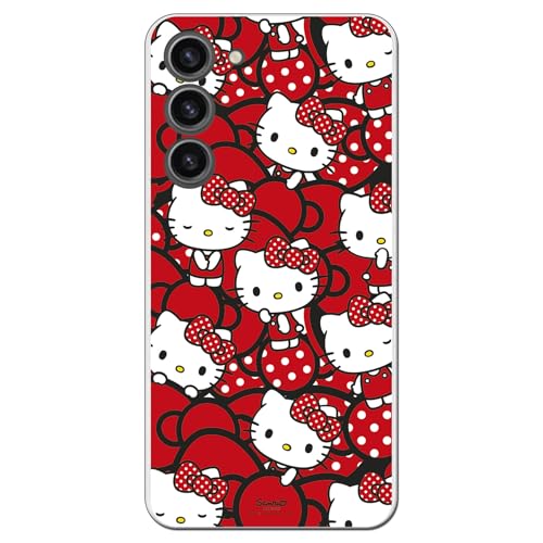 Personalaizer Fodral kompatibelt med Samsung Galaxy S23 Plus med Hello Kitty-mönster och röda bågar och prickar - kawaii stil - transparent flexibelt TPU-silikonfodral