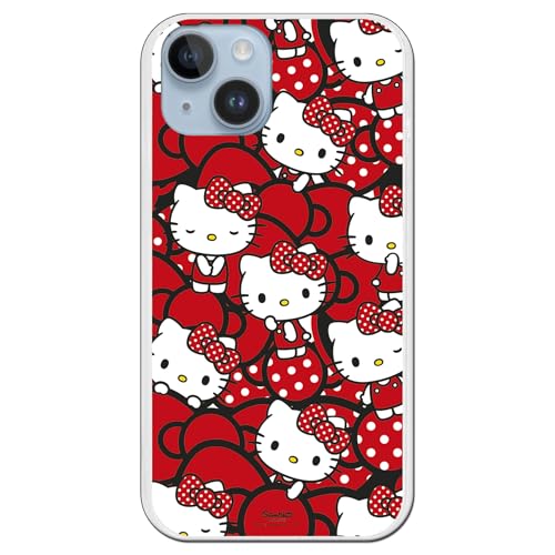 Personalaizer Fodral kompatibelt med iPhone 15 Plus med Hello Kitty-mönster med röda bågar och prickar - Kawaii stil - transparent flexibelt TPU-silikonfodral