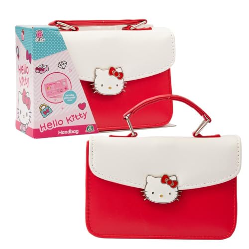 Hello Kitty Giochi Preziosi Modeväska med kreditkortsleksak, vit och röd färg, rött handtag, ansikte öppningsknapp, för barn från 3 år