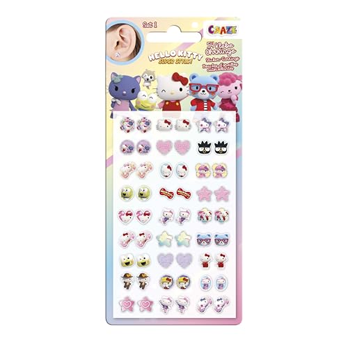 CRAZE Sticker Earrings HELLO KITTY Sticker-örhängen för flickor, 54 örhängen klistermärken med Hello Kitty-motiv och karaktärer, 2 olika örhängen set slumpmässigt frakt