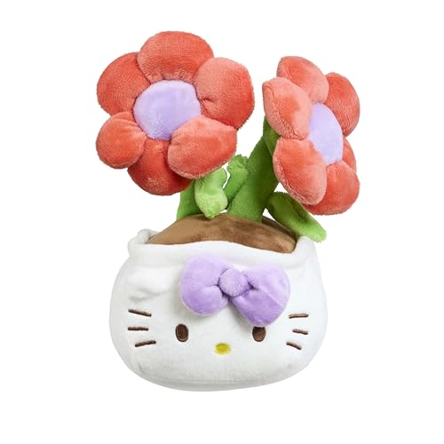 Hello Kitty Plants Plush, 20 cm mjuk leksak med lila band och blommig design, söt Hello Kitty-karaktär, officiell licensierad produkt, gåva för fans och samlare, lämplig för åldrar 4