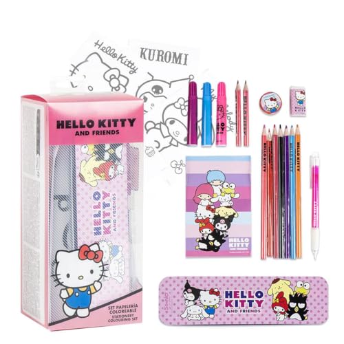 Hello Kitty färgbara brevpapper set – komplett skolpennfodral med markörer, färgpennor och tematillbehör för flickor Sanrio sötaste karaktärsfans, Hello Kitty, 1 unidad (Paquete de 1), Licensierad