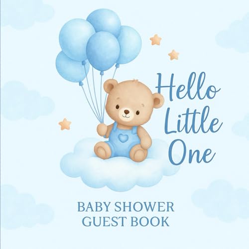 Hello Little One: A Blue Baby Shower Guest Book for Boys with Predictions, Wishes, and Gift Log