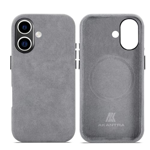 AKANTRA Alcantara-fodral för Apple iPhone16, handgjort helt inslaget syntetiskt mockafodral, kompatibelt med Magsafe trådlös laddning (grå, för iPhone16)