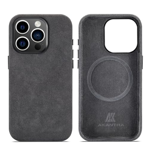 AKANTRA Alcantara-fodral för Apple iPhone 15 Pro Max, handgjort helt inslaget syntetiskt mockafodral, kompatibelt med Magsafe trådlös laddning (iPhone15 Pro Max, svart)