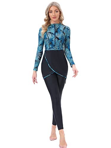 seafanny Kvinnors blygsamma baddräkt 3 delar heltäckande Hijab Burkini(Blåa löv 40-42) L