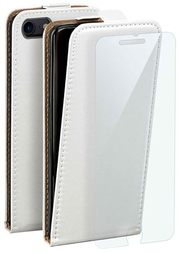 moex Flip Case för Apple iPhone SE (2020/2022) fodral, PU-läderfodral, hopfällbart skal, mobilfodral, skyddsfodral med skyddsfilm, mobiltelefonfodral vikbart, 360 graders heltäckande skydd – vit