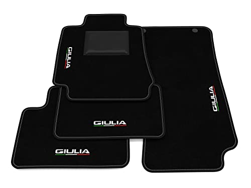 Mattor Kompatibel Med Alfa Romeo Giulia 2016-2021 4WD, Broderad Giulia Ita Flagga, Anpassade Bilmattor, Mattset Med Heltäckningsmatta