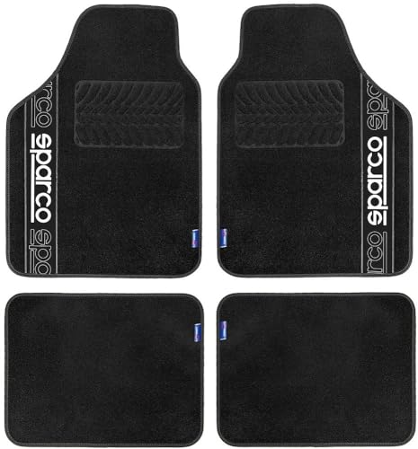 Sparco Set med 4 universella svarta golvmattor, 2 fram med logotyp och 2 bak, för heltäckningsmatta bilar
