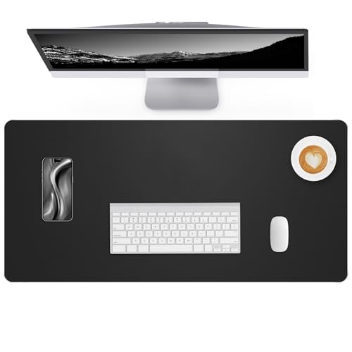 Lllunimon Crazy Horse läder stor skrivbordsdyna matta skydd halkfri vattentät bordsdyna blotter dator laptop tangentbord musmatta matta XXL skrivdyna för kontor och hem (svart, 120 x 60 cm)