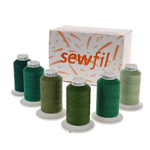 Sewfil hem - polydacor 120 - 6 x 1 000 meter polyesterbelagd sytråd 6 kottar Pack (MIX 68 - Green)