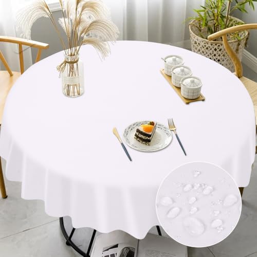 AUAUY Rund duk Fläckbeständig Tvättbar och Vattentät, Polyesterduk, Duk för Köksbordsdekoration, för Matsal, Trädgård, Fest eller Hem - Vit - 120 cm