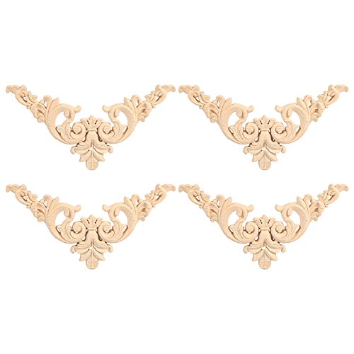 4 st träsnidade möbelapplikationer hörn onlay applikation möbler hem dörrdekor gör-det-själv (12 x 12)