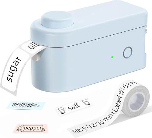 Makeid L1 etikettskrivare, etikettmaskin, självhäftande märkningsenhet, bluetooth, bärbar etikettskrivare, minietikettskrivare för hem och kontor, kompatibel med iOS och Android-telefon (blå)