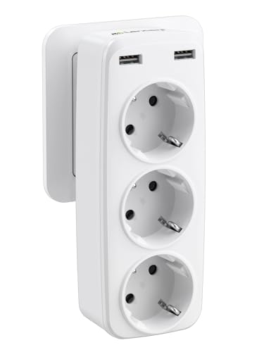 LENCENT 3-Vägs Uttag Plugg med 2 USB, 5-i-1 Multikontakt Grenuttag, 4000W Multipelkontakt, Multipeluttag Väggkontakt med 2 Portar USB-A Port för Hem, Kontors, Resor kompatibel med Telefon