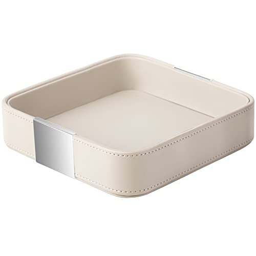 SANZIE Lyxig läderbricka skrivbordsförvaring liten catall organiserare dekorativ bricka för entrébord för att hålla smycken klocka kosmetika nycklar telefon plånbok hem och kontor tillbehör