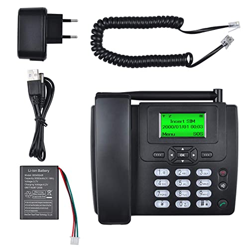 Lychee Simkort GSM bordstelefon – handsfree, SMS, stor display med bakgrundsbelysning, radiofunktion – telefon för hem eller kontor (svart 01)
