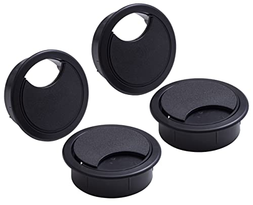 IPEA Runda svarta kabelgenomföringar – 4 stycken – kabelgenomföringslock för bord, skrivbord, väggar, kontor, hem – kabelgenomföring för dator, mus, TV, telefon – diameter 60 mm