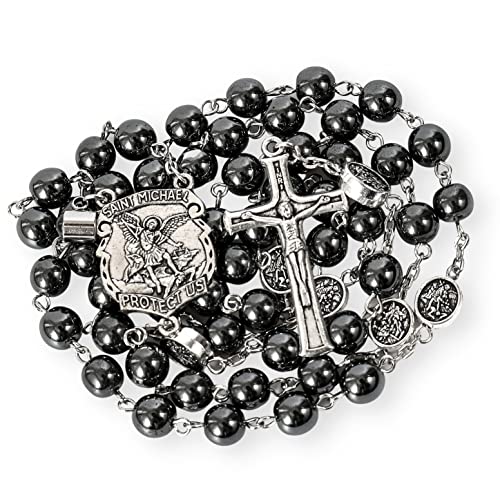 Nazareth butik hematit radband svart sten pärlor radband halsband vår far projektion bön medalj St. Michael mittpunkt för män, kvinnor, Zink