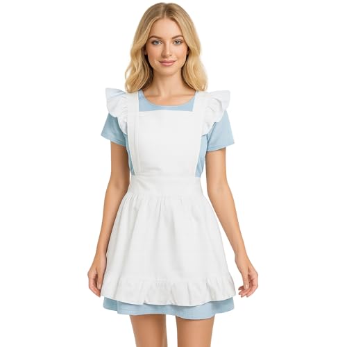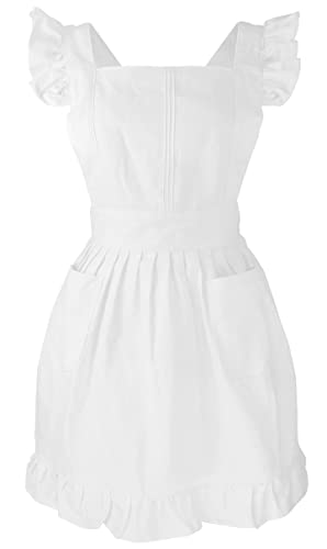 Aspire Retro volangförkläde, justerbart köksförkläde för kvinnor flickor med pannband, vintage bakförkläde hembiträde kostym, Vitt, XL