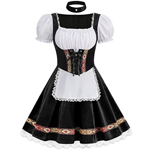 maxToonrain Oktoberfest-outfit för kvinnor, tysk, öl, bayersk, traditionell, kortärmad, sammet, halloween-dräkt, hembiträde, klänning för kvinnor (svart, XL)