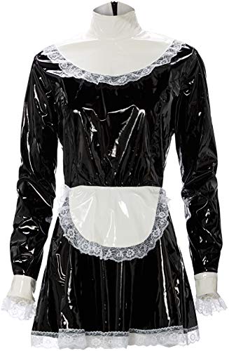 MAYAIO Anime Fransk Sissy hembiträde förkläde Lolita maskeraduniform cosplay kostym lurvig katt öron handskar strumpor fullt set (5XL, svart)