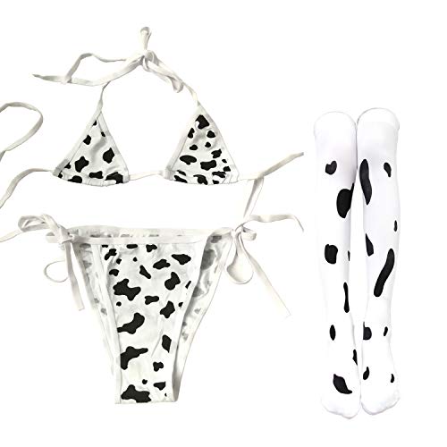 SINROYEE Cosplay kostym anime sexig mini ko bikini underkläder set hembiträde outfit dalmatiner mjölk leopard baddräkt, bikini bh set och kostrumpor, one_size