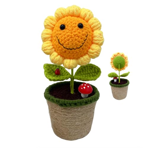 JOPOYOCO Konstgjord virkad solros, handstickad ull smiley ansikte blomkruka solros för heminredning ornament barn födelsedag bröllop lärardag presenter