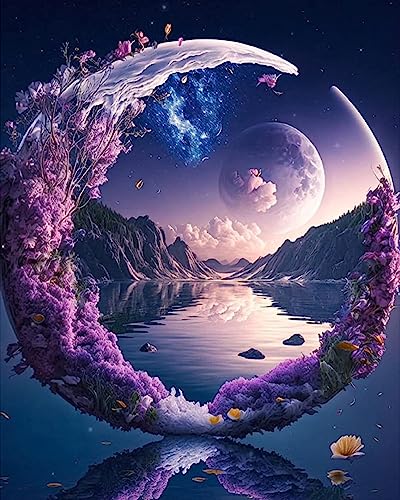 TISHIRON Måla efter siffror för vuxna, måne gör-det-själv oljemålning efter siffror på duk blomkonsthantverk med penslar akrylfärger för barn, heminredning 40 x 60 cm, ramlös