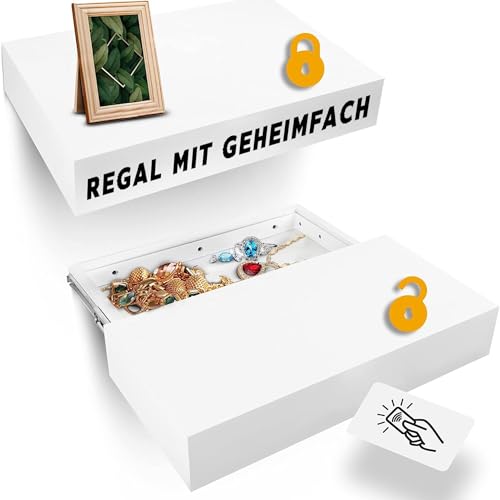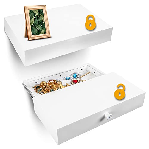Elder Welder® Flytande Hylla med Hemligt Fack | 30 cm x 60 cm | Säkerhetsskåp | Vit Vägghylla med Hemlig Förvaring och Nyckel | Hylla med Låda | Perfekt som Gömställe för Värdesaker