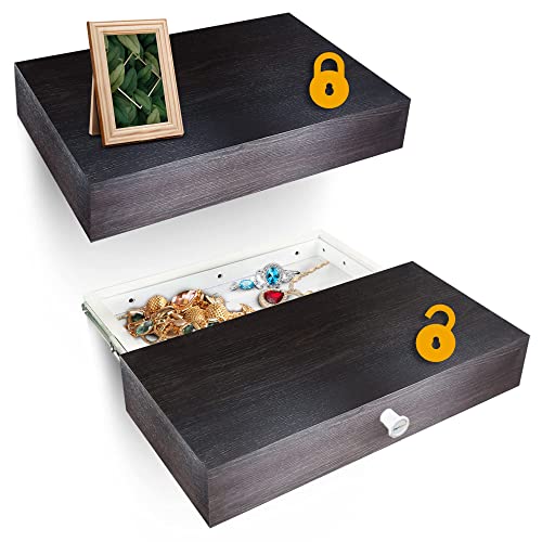 Elder Welder® Flytande Hylla med Hemligt Fack | 30cm x 60cm | Säkerhetsskåp | Wenge Vägghylla med Hemlig Förvaring och Nyckel | Hylla med Låda | Perfekt som Gömställe för Värdesaker