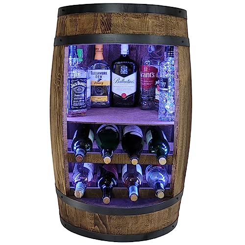 Weeco Vinfat bar med belysning - träfat 80 cm och vinställ i trä - vinskåp - snygg hemmabar - minibar alkohol skåp whiskyfat - vinbehållare shotfat Tunna möbler