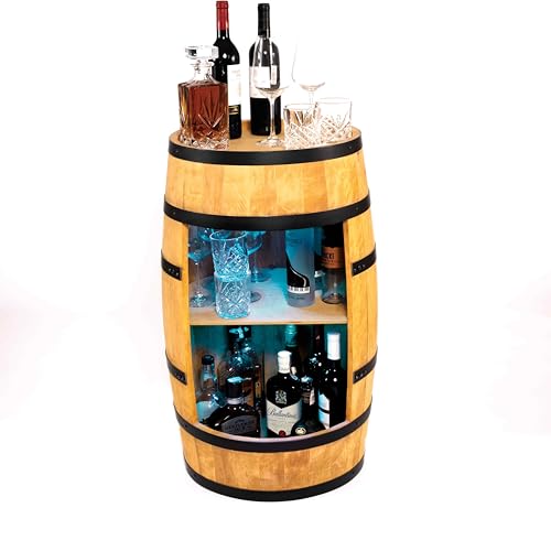 Fat med dörr och RGB LED-belysning, handgjort träfat, tunna, spritfat, förvaringsskåp för vin, whisky, öl, flaskor, vinflaskor, hemmabar, 80 x 50 cm En present för alla tillfällen.