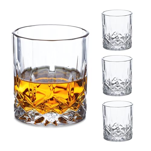 Relaxdays Whiskyglas set om 4, 300 ml, elegant utseende, whisky-tumbler, för hemmabar och vitrinskåp, snapsglas, transparent