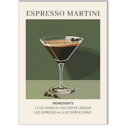 Lyckliga motiv – premium cocktailaffisch Espresso Martini A3 – tryck på 300 g papper, väggdekoration för bar, kök och hemmabar, kontor