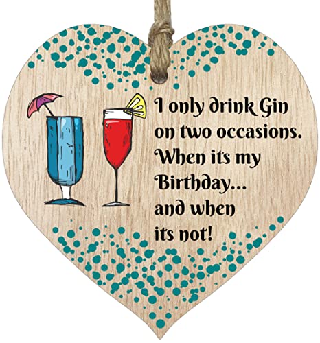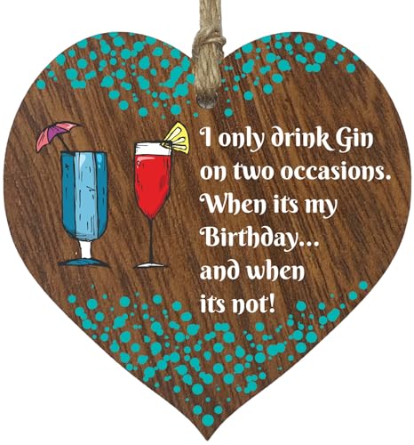 I Only Drink Gin hängande trähjärta skylt julplakett gin presentset – ljusa trähjärtan, rolig födelsedagsminnessak, häng runt en gin miniatyrer presentset, gin-skyltar för hemmabar, ovanlig Gin-gåva