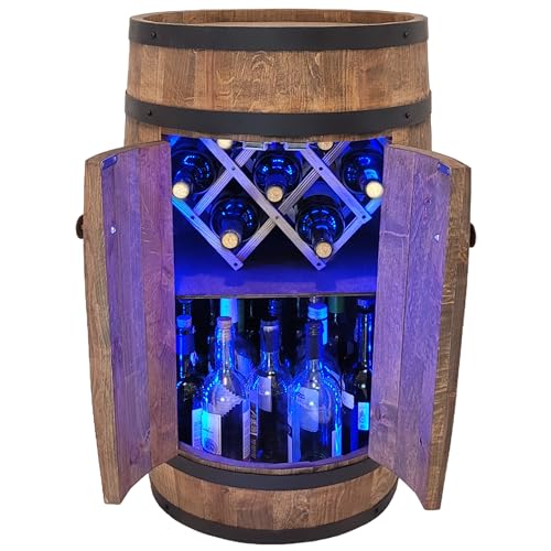 Fat med 2 dörrar och led-belysning, träfat, 80 cm, vinfat – barskåp, handgjort flaskställ, hemmabar, vintagebänkskiva, vägghylla i trä, whisky, vin, öl – barbord, present för män