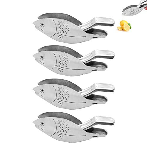 BestAlice 4-pack manuell citronjuice, citronskivpress för klämning av citron, citronpress i rostfritt stål, bärbar fruktjuicer för hemmabar, fisk
