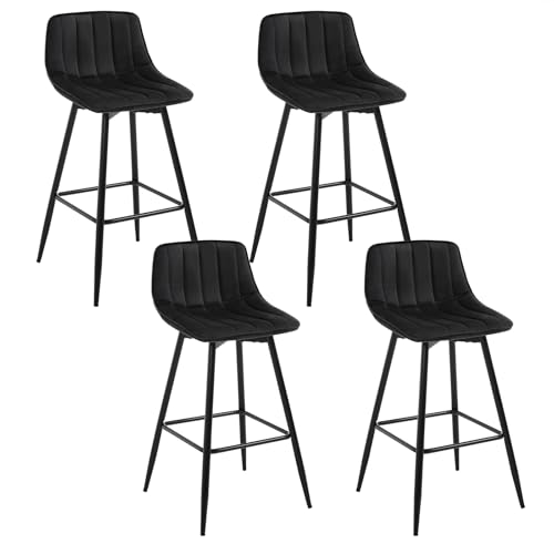 WOLTU barstolar 4 x set barstolar motstolar bistropallar med ryggstöd med fotstöd sammetssits med ryggstöd för hemmabar svarta ben svart