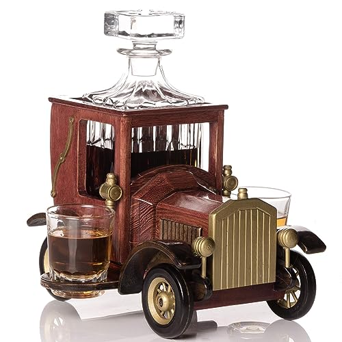 Kemstood Whiskykaraffset med glasögon och gammaldags vintage bilstativ (945 ml) – bourbon-karaffset med glasögon för sprit, vodka – jul- och whiskygåvor för män – tillbehör för hemmabar
