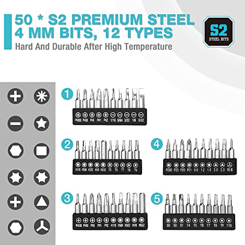 DURATECH Elektrisk skruvmejselset, 50 bits, batteridriven precisionsskruvmejsel på 3,6 V med LED-ljus, för finmekaniker, klocka, laptop, glasögon, leksaker, present till hobbyutövare och hemmafixare
