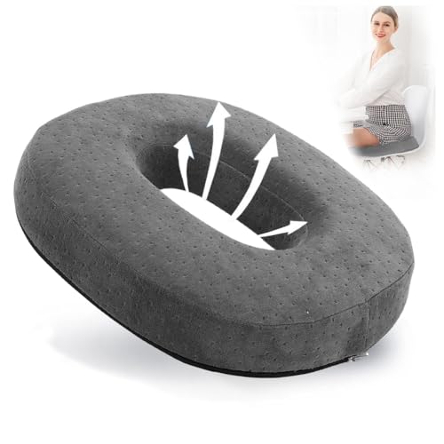 LOMUG Ortopedisk sittdyna grå, hemorrojder sittdyna minnesskum stolkudde, ortopedisk sittdyna rund, sittring svansko, avlastning munkkudde för rullstol, bilstol, soffa, kontor