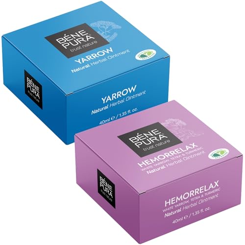 BenePura hemorrojdersalvor - Behandling för hemorrojder, analhögar och sprickor - Lindrar sveda och klåda - 100% naturliga örtsalvor med vit rölleka - Set med 2 x 40 ml