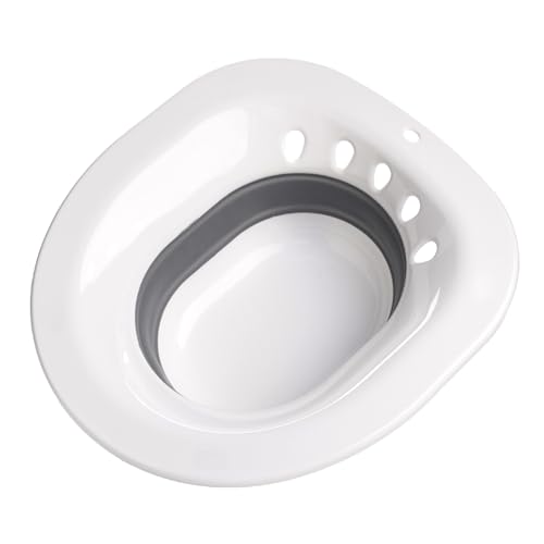 Sitz-bad för Hemorrojder, Anti-halk Sittbad för Efterförlossning, Unisex Sitz-badsits för Blötläggning, Sitz-badkar med Avloppshål och Hängande Hål, Sittbadset för Kvinnor (Vit)