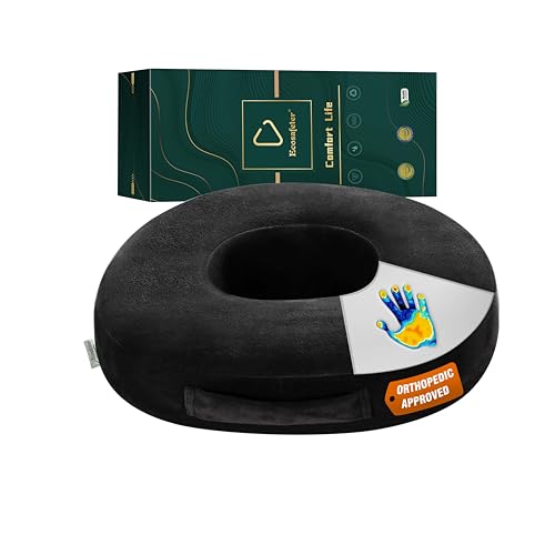 Ecosafeter Ortopedisk ring minnesskumkudde – munkkudde för att lindra hemorrojder, smärtor i svanskotan, graviditet, efter förlossningen, perfekt för rullstol, bilstol, kontor eller utomhus