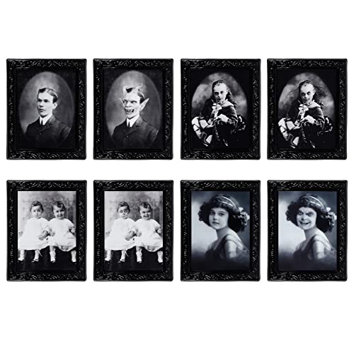 ECGER Halloweendekorationer inomhus skrämmande 3D byter ansiktsbilder, rörlig porträtt ram dekor, för skräckfest spöke slott hemsökt hus heminredning (8 Delar)