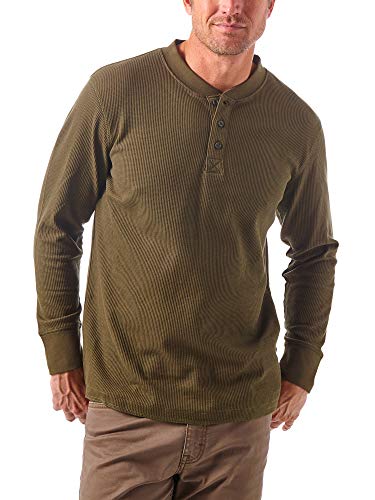 MakingDa våffla Henley T-shirt herr långärmad smal passform farfar krage knapp t-shirts toppar, Armégrönt, M